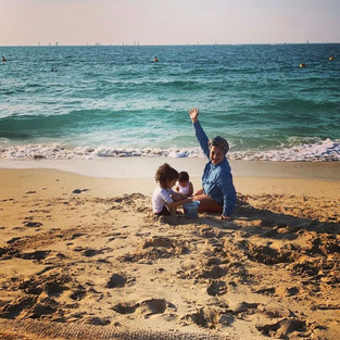 Fotos von Menerva Hammad und ihren Töchtern.